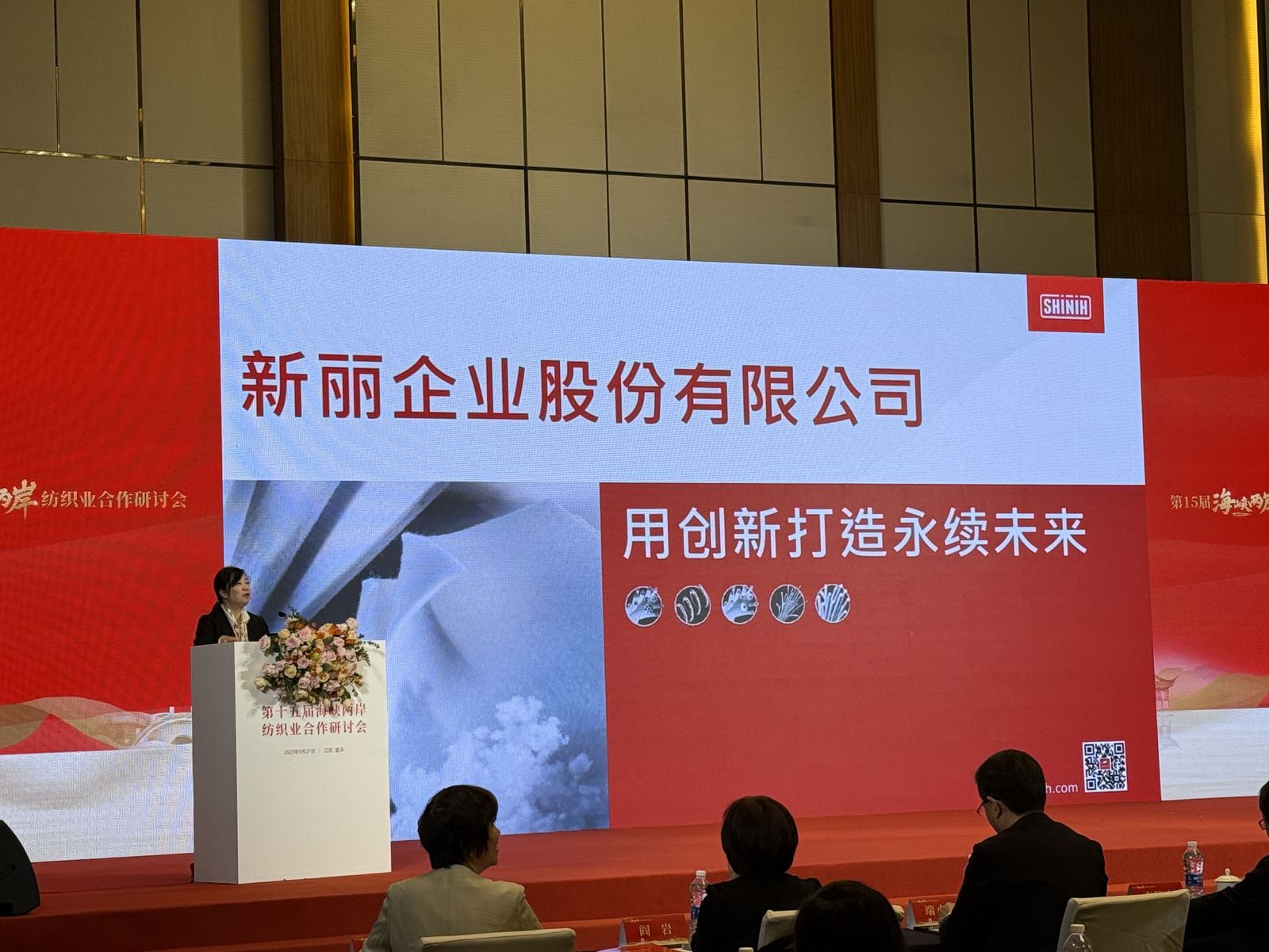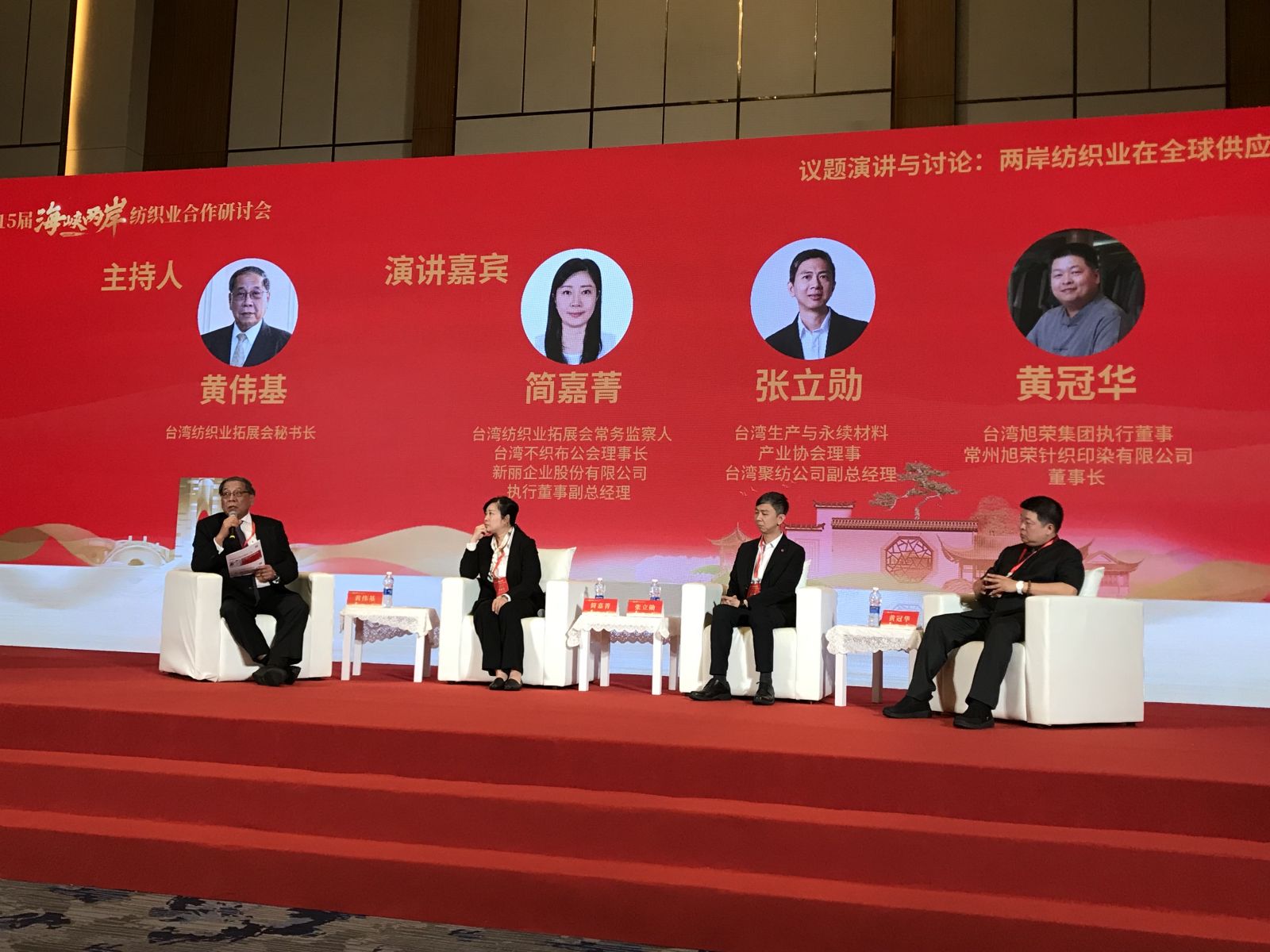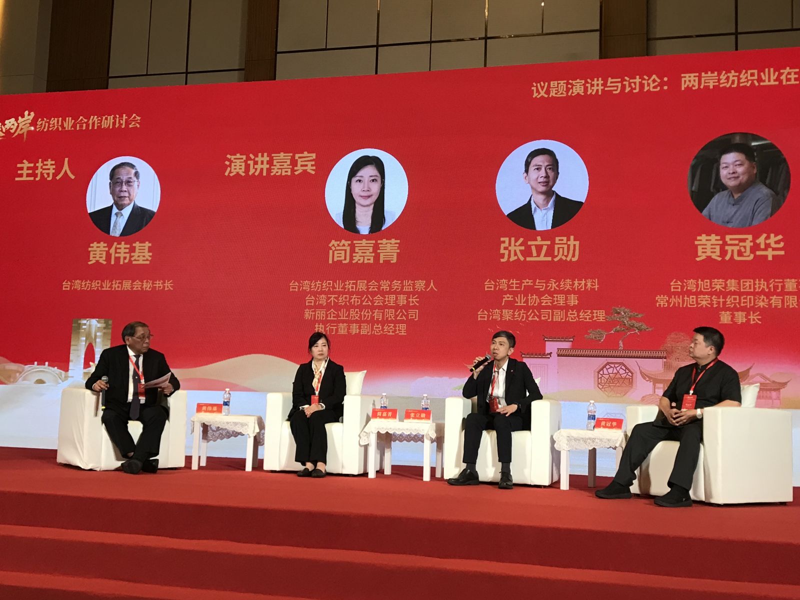 本會簡嘉菁理事長前往江蘇蘇州吳江參與第15屆海峽兩岸紡織業合作研討會,與兩岸紡織企業先進針對兩岸紡織產業發展現狀與未來展望進行交流。