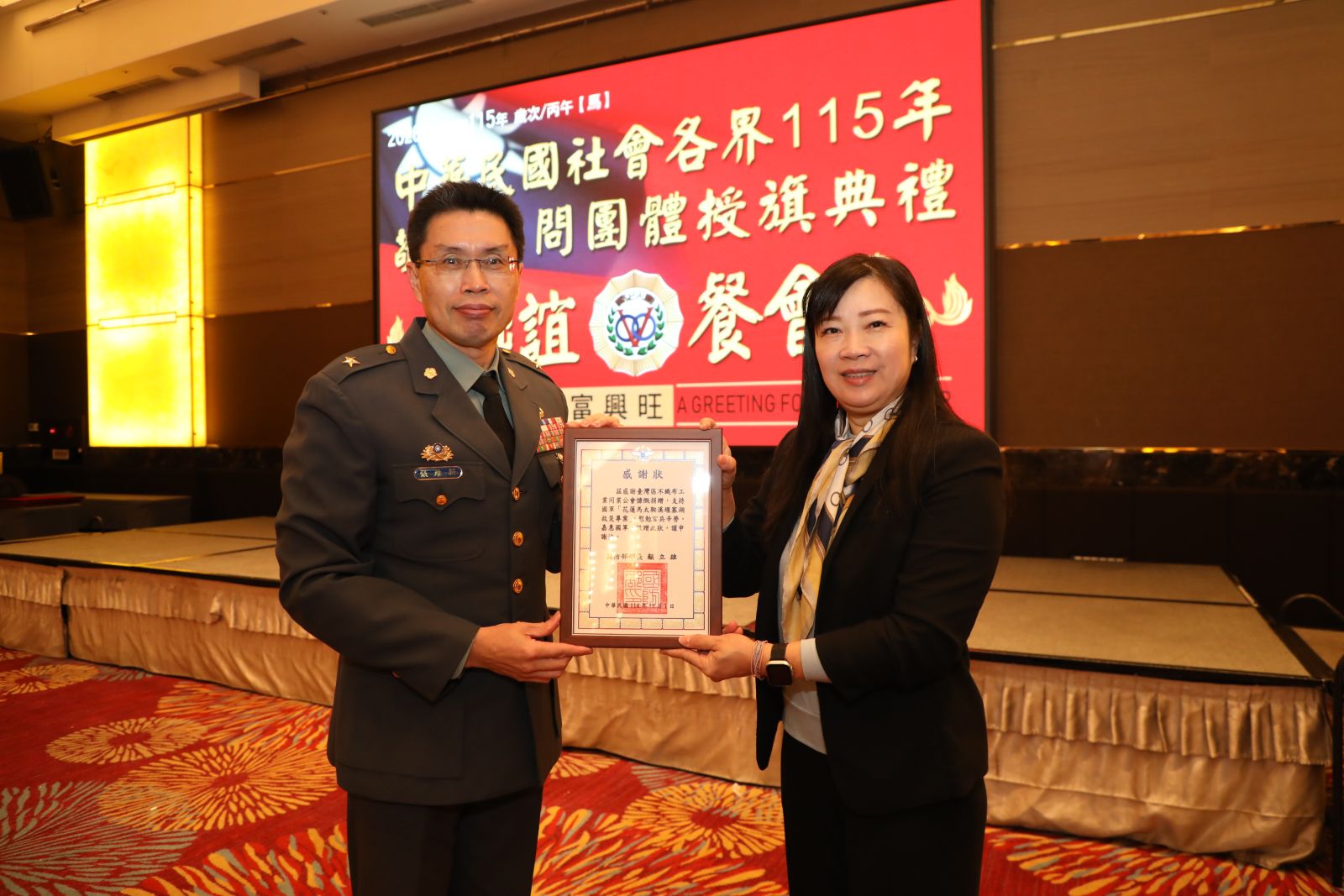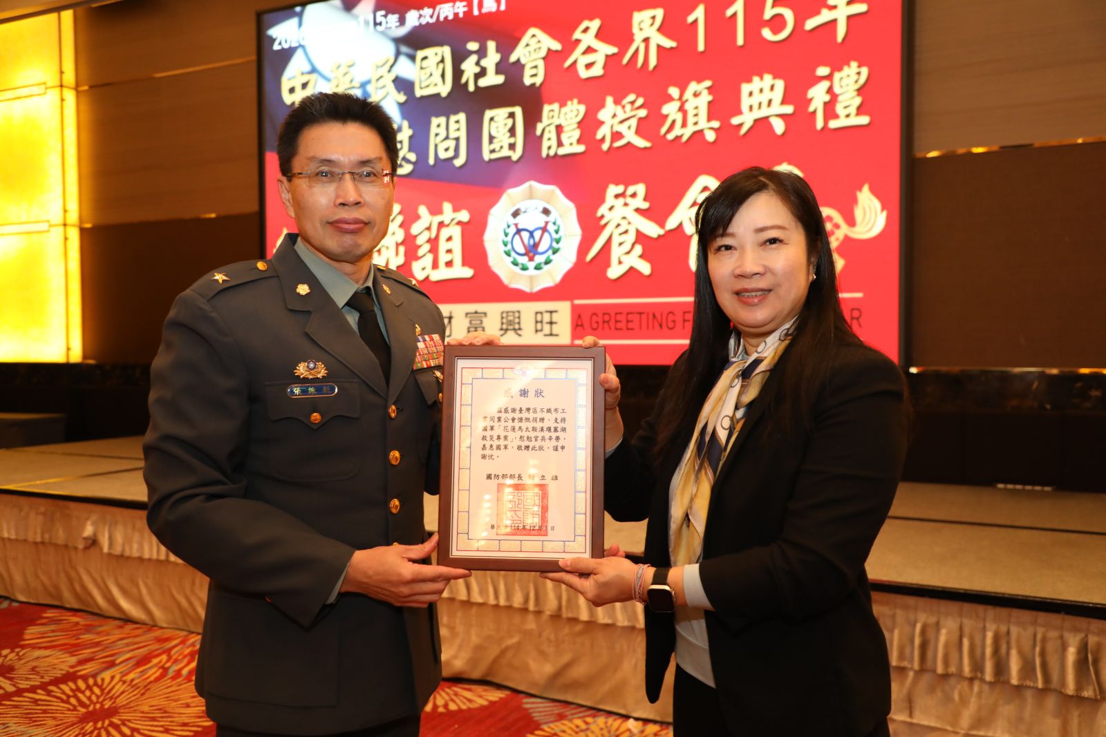 昨(12月17日)本會簡嘉菁理事長參加114年敬軍慰問團體授旗,持續對國軍保家衛民的貢獻表達支持與謝意